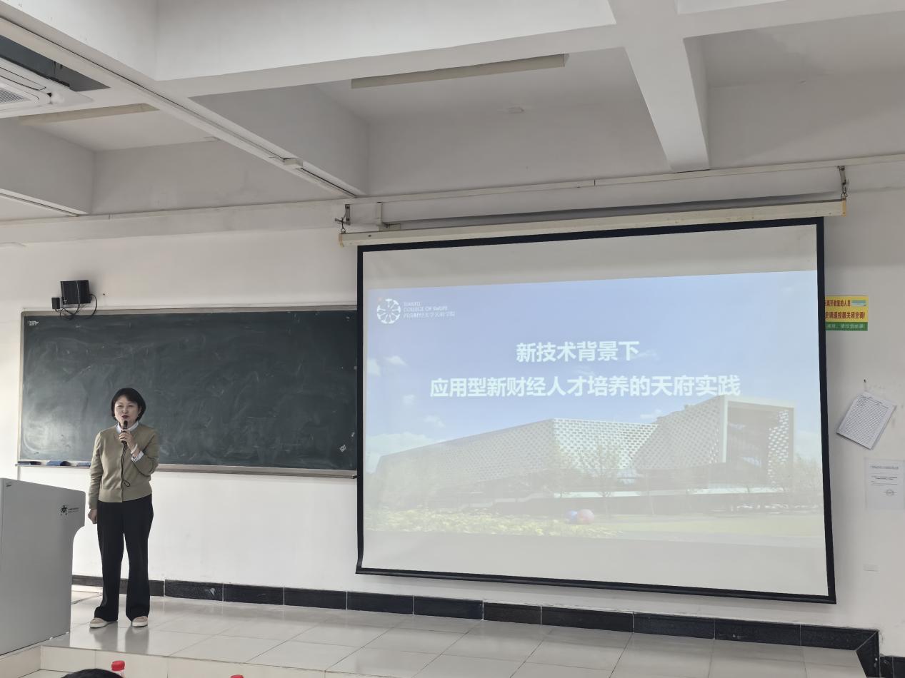 在演讲中,陈教授重点阐述了新技术背景下学科的转型与教育的变革。她表示,随着全球经济一体化的深入和新兴技术的发展,财经人才需要具备跨文化沟通、国际视野和全球思维等素质,同时还要应对科技变革的挑战,具备科技素养和创新能力。在课程方面,天府学院设立了数智财经卓越人才创新班,围绕商业能力、专业能力、技术能力、职业能力和认知能力五大框架,设置了少而精的必修项目和多而广的选修项目,打破了传统的教学模式,实现了个性化培养。通过项目式、研讨式等多样化的教学方法,激发了学生的学习兴趣和主动性,提升了学生的综合素质和创新能力。