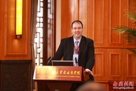王华校长指出,区域国别研究是服务国家战略的关键纽带,新成立的研究院将依托学校多学科优势与广东区位特色注入发展动能。吴雷钊处长进行线上致辞,他回顾了中美北极科考合作成果,肯定了南国商学院极地中心在中美北极社科论坛机制化建设,以及为国家有关部门极地事务管理提供咨询建议方面做出的突出贡献,强调中美关系的基础在民间;同济大学夏立平教授以“大道之行也,天下为公”开篇,追溯论坛自2015年创办历程,引用习近平总书记“中美共担大国责任”的论述,呼吁以《中央北冰洋公海渔业协定》为基础深化气候应对等领域合作;Brandon M. BOYLAN教授则提出“北极例外主义是否消逝”的议题,他坦言中美虽存战略竞争但北极合作空间广阔,各方均期待以研究院成立为新起点,凝聚中美学术共识助力全球极地治理。