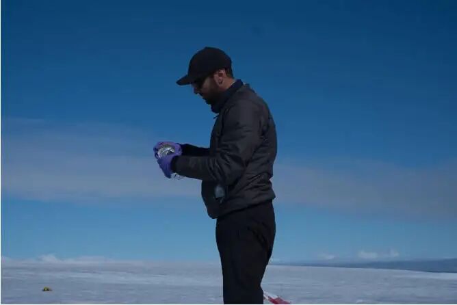 阿内西奥在格陵兰岛收集微生物样本