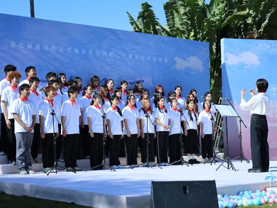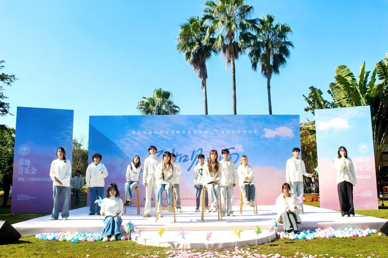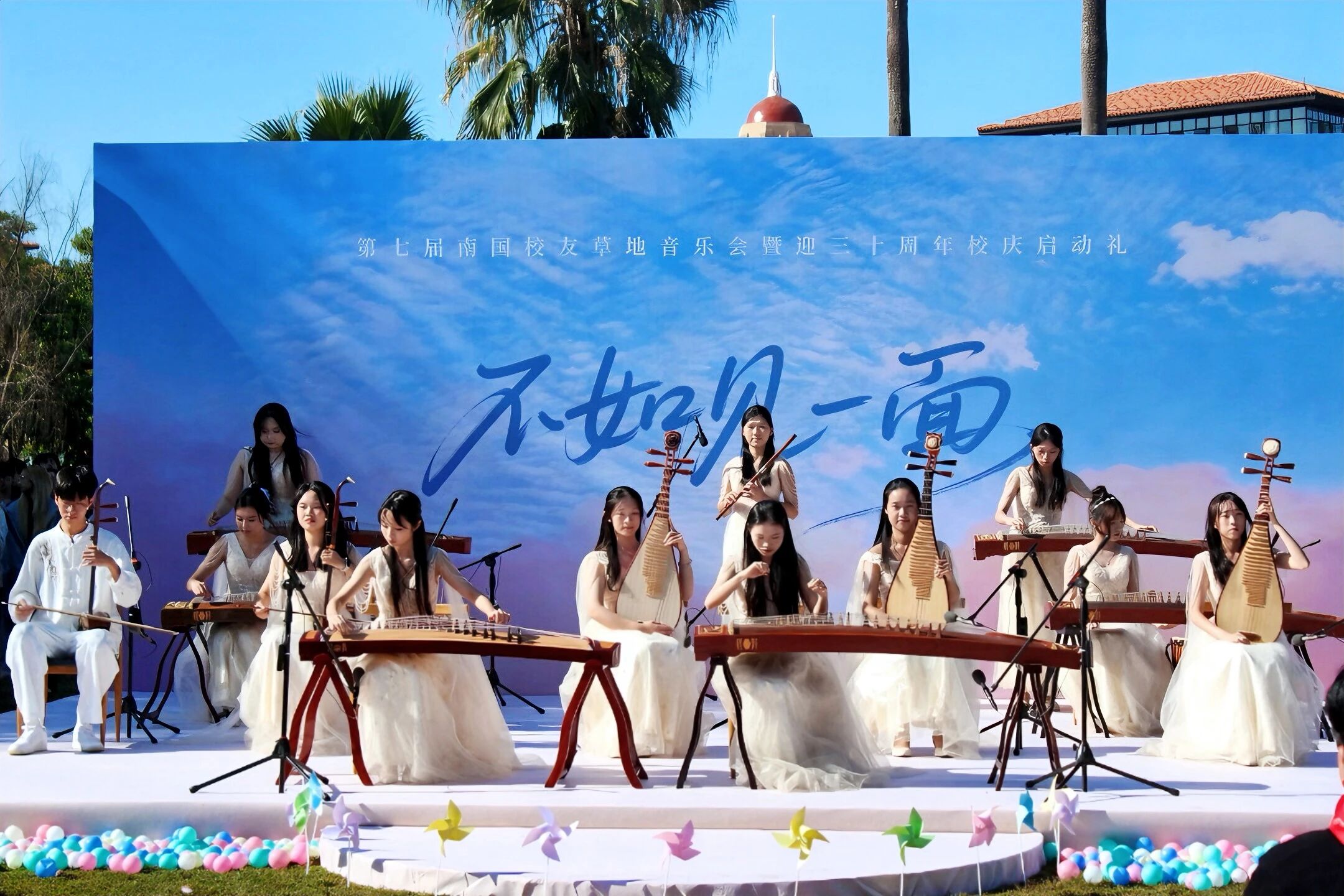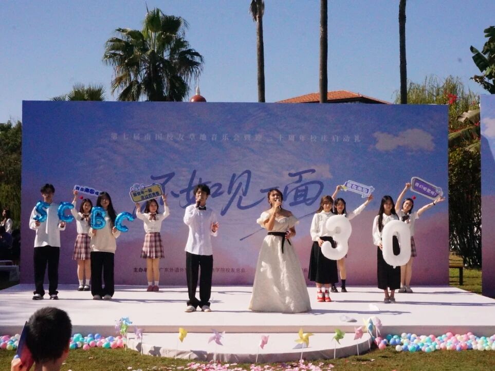【本网讯】2025年11月29日,以“不如见一面”为主题的广东外语外贸大学南国商学院第七届校友草地音乐会暨迎三十周年校庆启动礼在薪火音乐草坪举行。校友总会副会长赖志立,校友总会秘书长翁琳,2006级电子商务专业校友、深圳校友会会长杜硕忠等200多位校友出席了本次音乐会。