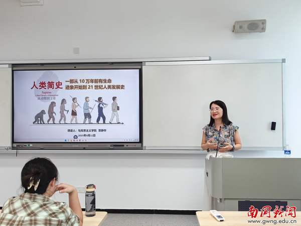 9月11日下午,学校图书馆组织的师生共读经典系列活动在教学楼H803正式拉开帷幕。首场活动特邀我院教师覃静华担任领读人,以全球畅销著作《人类简史:从动物到上帝》为文本,通过认知革命、农业革命、科学革命三大理论框架,为30位参与师生带来了一场跨越百万年的人类文明演进之旅。