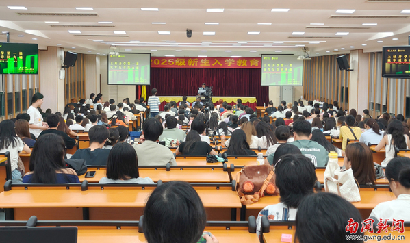 9月15日,2025-2026学年秋季学期“思政第一课”暨新生入学教育第一讲正式开讲。校长王华以“始于规划 成于笃行:在国家蓝图与个人坐标间寻找你的大学航向”为主题,为全体新生搭建起连接国家发展、学校建设与个人成长的思想桥梁,引导同学们在伟大时代浪潮中明确方向、笃定前行。讲座由学生处副处长王黎明主持。
