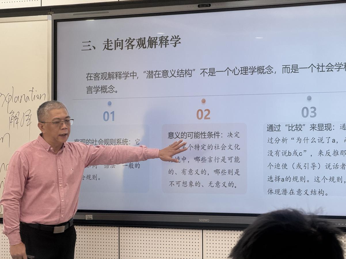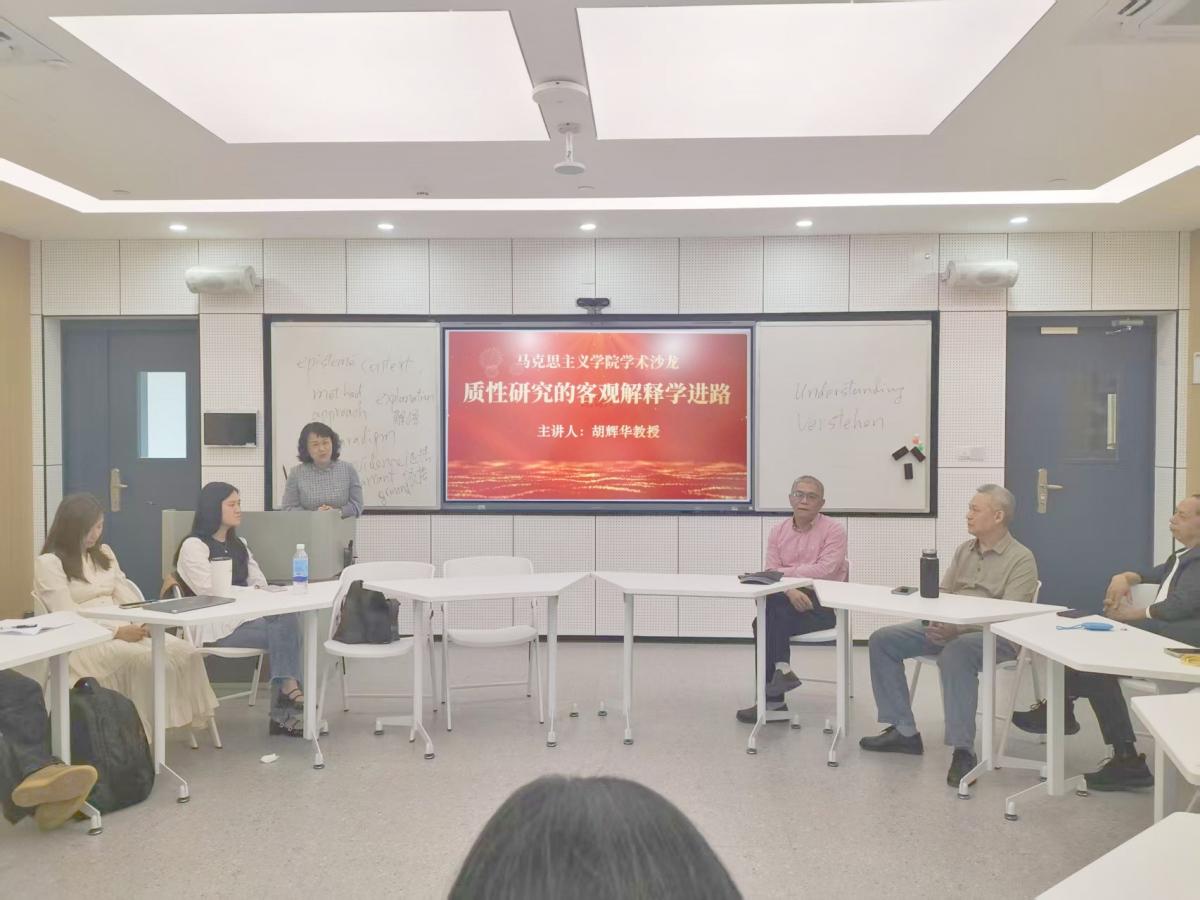 为搭建教师学术交流平台,激发科研创新活力,提升教师科研育人效能,116,学院在智慧课室H403成功举办博士沙龙(工作坊)。此次学术沙龙特别邀请胡辉华教授主讲,他以《质性研究的客观解释学进路》为题展开分享,学院全体教师到场聆听。