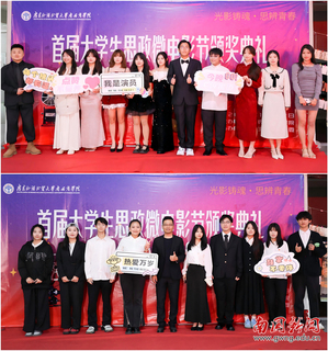 典礼伊始,一场别开生面的红毯仪式拉开帷幕。荣获“十佳作品”的主创团队身着盛装,自信从容地步入会场,在签名墙上留下青春的印记。这不仅是荣誉的加冕,更是对思政课教学改革成果最生动地展示。马克思主义学院副院长高攀表示:“我们希望通过这种‘仪式感’,让思政教育从课堂走向舞台,让理论学习的成果变得‘可见、可感、可传播’。”