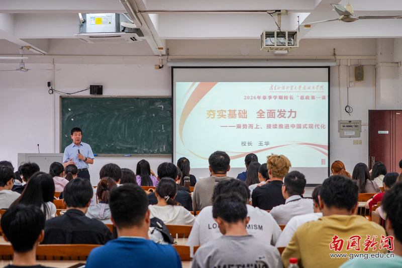 3月25日下午,校长、党委副书记王华教授以“夯实基础 全面发力——乘势而上 接续推进中国式现代化”为主题,在F502教室为2025级西班牙语、法语、英语师范专业班共计90余名学生讲授了2026年春季学期校长“思政第一课”。此次授课将宏大的时代叙事与青年学子的成长成才紧密结合,为同学们理解国家发展大局、把握时代机遇、规划个人发展提供了深刻的思想指引。