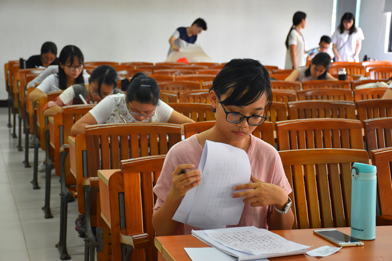 赛前,选手们事先准备好参赛所需要的材料,其中有笔墨纸砚以及自选题的资料。比赛正式开始,选手们参照资料并认真完成自己的作品。