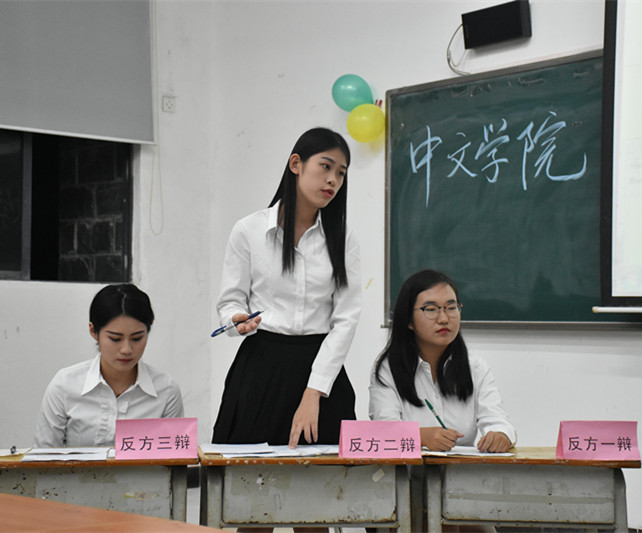接下来的比赛也给观众呈现了一场场精彩的视听盛宴。虽然第四组比赛出现突发状况——正方队伍因故弃权,但为了使比赛顺利进行,主办方临时决定将反方队伍拆成两队,以二对二的形式,围绕“鸡头和凤尾谁更具有优势”这个辩题展开了辩论,精彩程度丝毫不亚于之前的队伍,赢得现场观众的阵阵掌声。