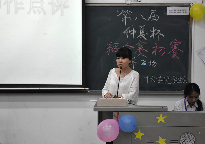 本网讯 4月27日晚,由中国语言文化学院学生会主办的第八届“仲夏杯”辩论赛初赛第二场在F103举行。参赛的四组辩论队分别围绕“精神病人杀人该不该判重刑”、“文凭是否等于能力”等辩题展开辩论。我院院长助理周文、专职教师谢志平、我院学生会指导老师方媛及第七届“仲夏杯”辩论赛最佳辩手梁雨威担任比赛评委,学生会主席团、学生会前学习部部长李锦芳、谢利科作为嘉宾出席本次比赛。
