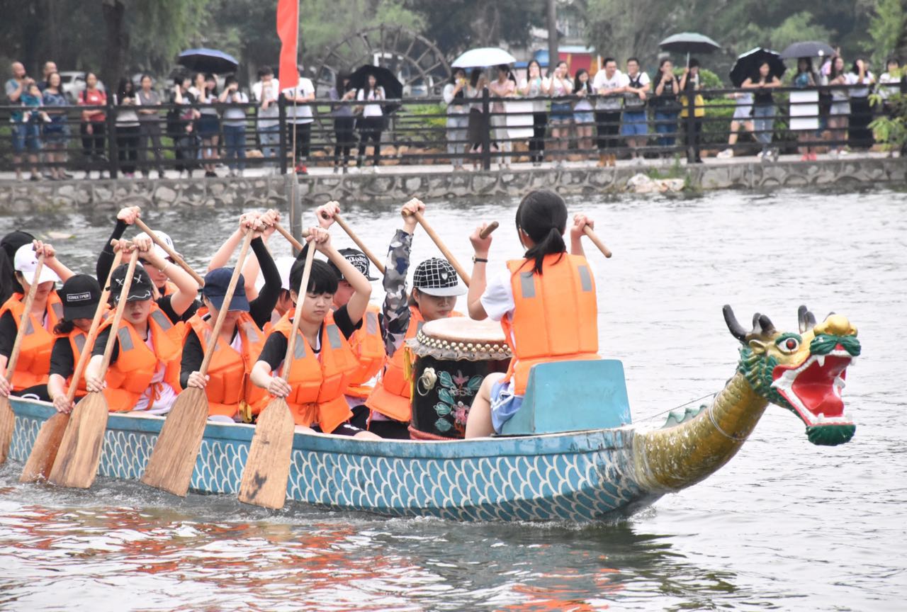 决赛结束后,记者采访了中文学院参赛教职工孙东晓。作为中文教工组龙船四大女汉子之一的孙东晓表示,端午节是中国的传统节日,她每年都会与同事一起参加龙舟赛,在热闹中体验文化,同时这项活动又促进了教职工与保卫处、后勤人员等学校其他工作人员的交流,意义非凡。
