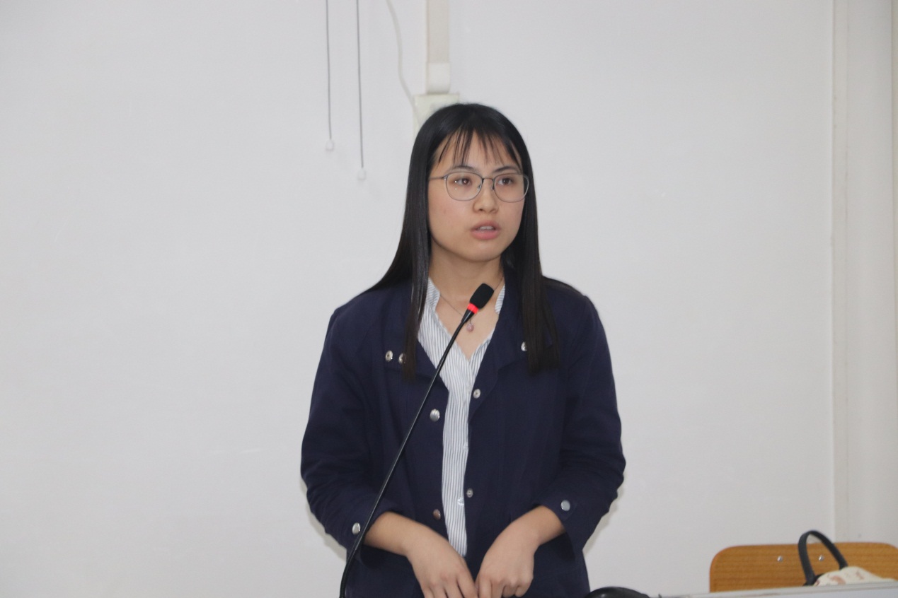 14级汉语国际教育的陈蔓萍师姐上台分享(廖梓铃 摄)