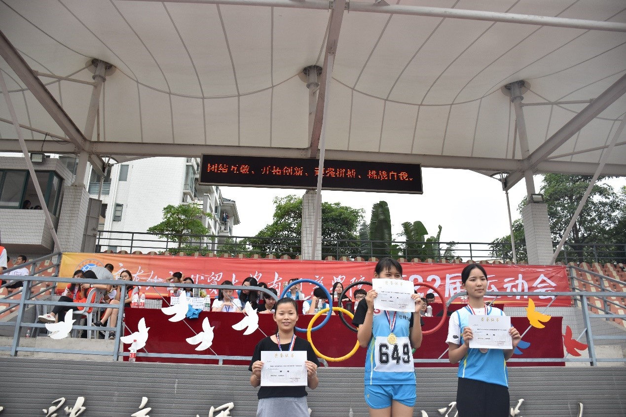 11月16日上午,我校在操场顺利举行女子三级跳远比赛。我院唐会蒗同学顺利进入决赛并以7.84米的成绩获得了我校女子三级跳远第七名。