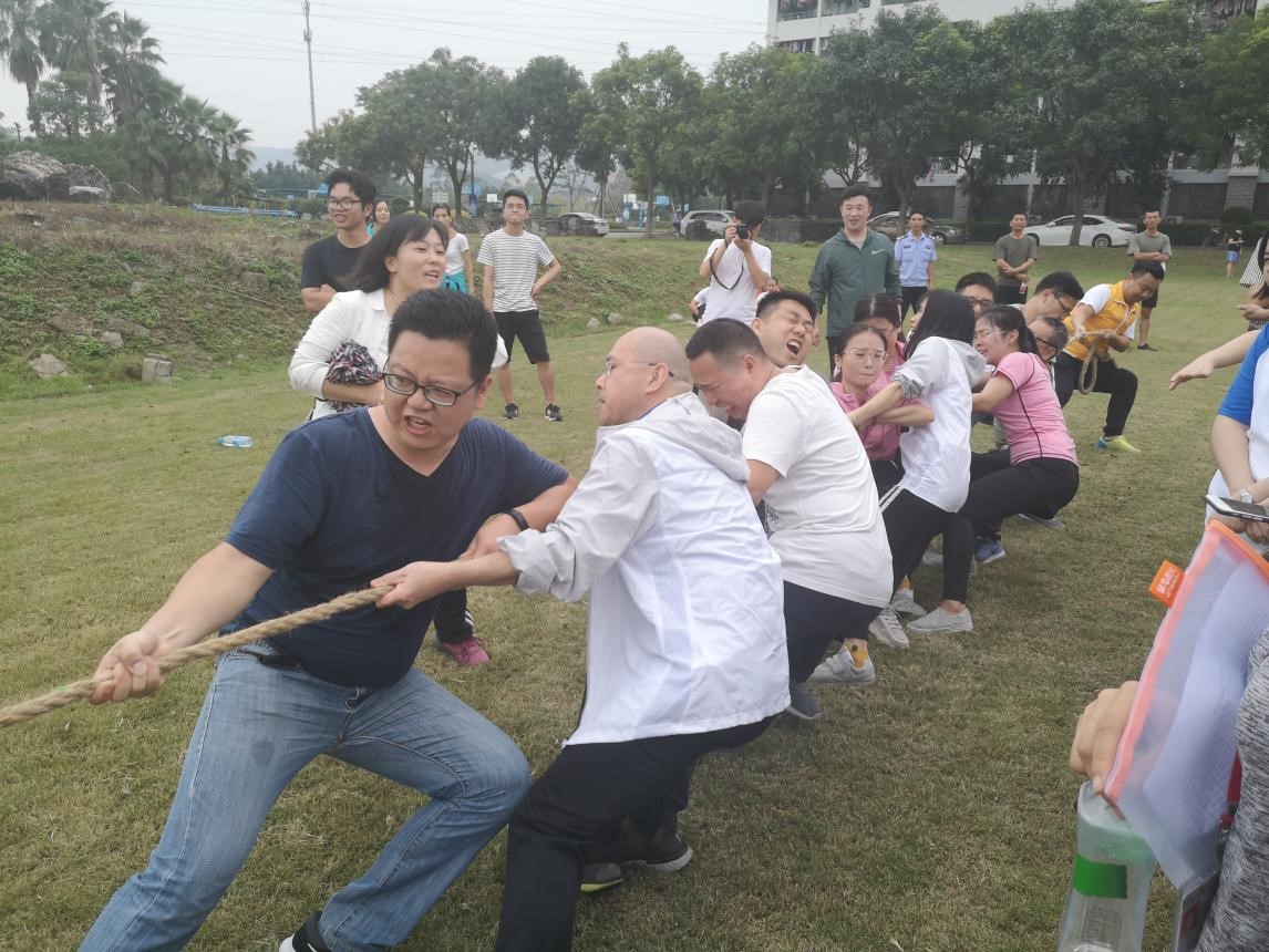 11月15日下午和16日上午,校运会教工组“力拔山河”拔河比赛预赛和决赛分别在运动场旁边的草地上举行。比赛分为四场,其中,中文教育工会与信科工会的老师们一起对抗英语工会和后勤二工会的老师们。随着比赛的裁判一声哨响,中文学院与信科学院的老师团结协作,同时发力,一起紧握长绳,一个个手挨着手,脚顶着脚,身体后仰,奋力地拔着绳子。