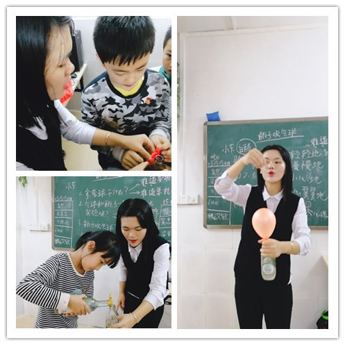 经过培训以后的黄小东在3月27日的写作课上,先带着学生进行了“瓶子吹气球”的实验,并以实验的体验过程为写作素材,引导学生完成了写作。