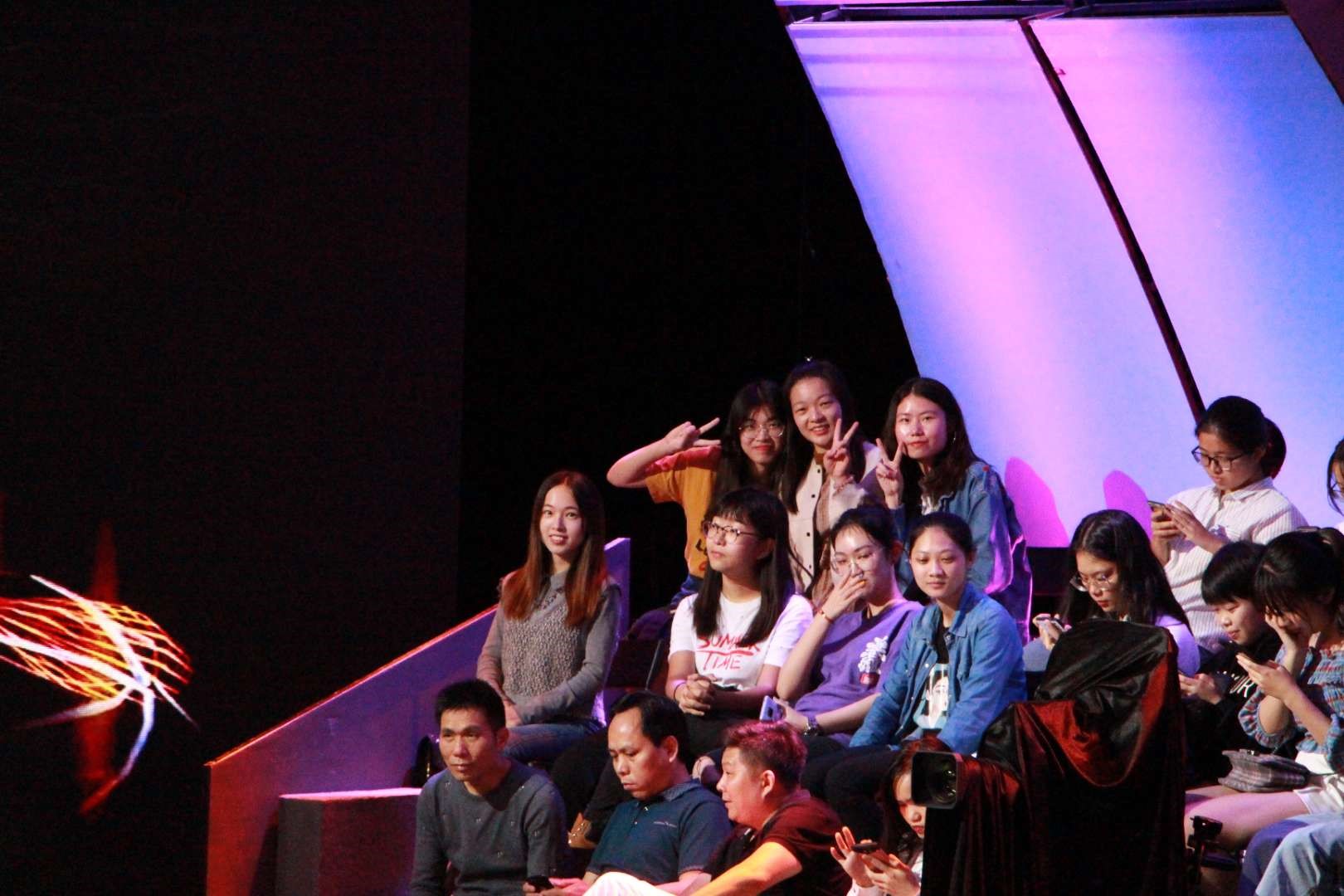 有趣的是,当2016级涉外文秘班的张峻森坐到台上观众席时,附近的一位观众直呼“杨洋”,甚至还提出了与之合照的要求。“虽然感到很意外,但还是答应了请求”,除此之外,张峻森坦言,“在台上当观众和在台下有着不同的感受,比如主持人行云流水的讲述更为直观,作为镜头前的观众更需要注意仪态等。”通过今天的近距离观察,他还收获了如何捕捉镜头等在台下学不到的细节知识。