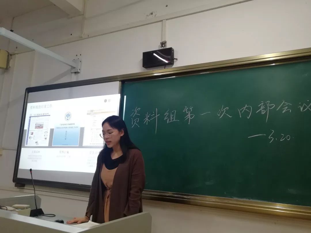 紧接着,在第二部分里,刘朕伊介绍了资料组的日常工作。刘朕伊详细地介绍《支部园地》的排版与资料刊物的收集、《资料汇编》、党务系统的录入与审查等日常工作的细节与程序,并希望成员们能够细心、耐心地完成,提高工作的效率与准确度。
