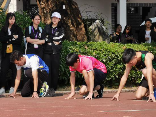 11月15日上午,学生组4x100米接力顺利举行。中国语言文化学院派出许冰芬、邓诗敏、王瑜婷、黄志琪四名同学参加该项目。每位运动员跑到最后都已精疲力竭,但她们都尽全力作最后的冲刺,冲向下一位接力者。她们目视前方,脚下生风,配合紧密,合作有序,最终顺利完成了交棒,取得了不错的成绩。赛后,记者对邓诗敏同学进行了采访,她表示下次还可以更优秀,希望明年能尝试别的项目。
