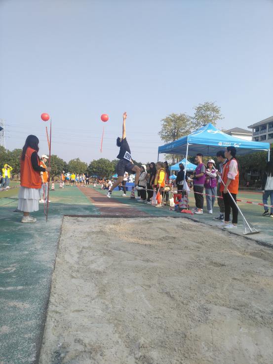 11月15日上午,女子学生组三级跳远比赛在我校运动场顺利进行。随着裁判的红旗一挥,我院选手唐文蒗从远处飞奔而来,连跳两步后一跃而起,稳稳地落在沙池上,跳出了7.71米的好成绩。