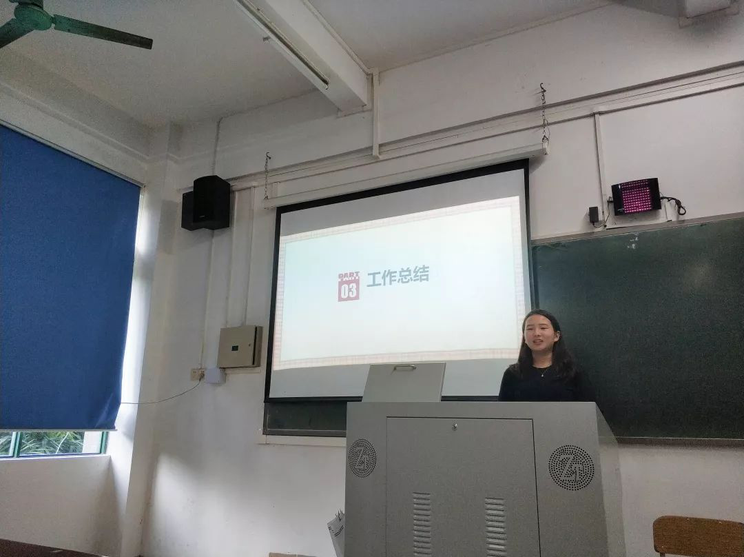在第三部分里,物讯组组长黄慧敏和刘洋丽对上一期的工作进行了总结。她们表示,上学期的工作整体不错,但有些细节仍需注意。黄慧敏具体分析了工作失误的例子,找到了具体的问题,并提出了可行的解决办法,为以后更好地开展工作提供了经验。