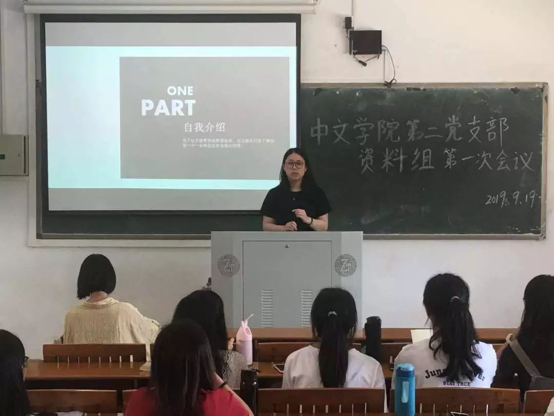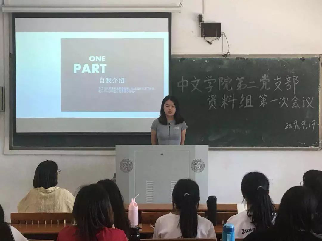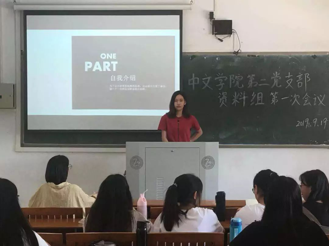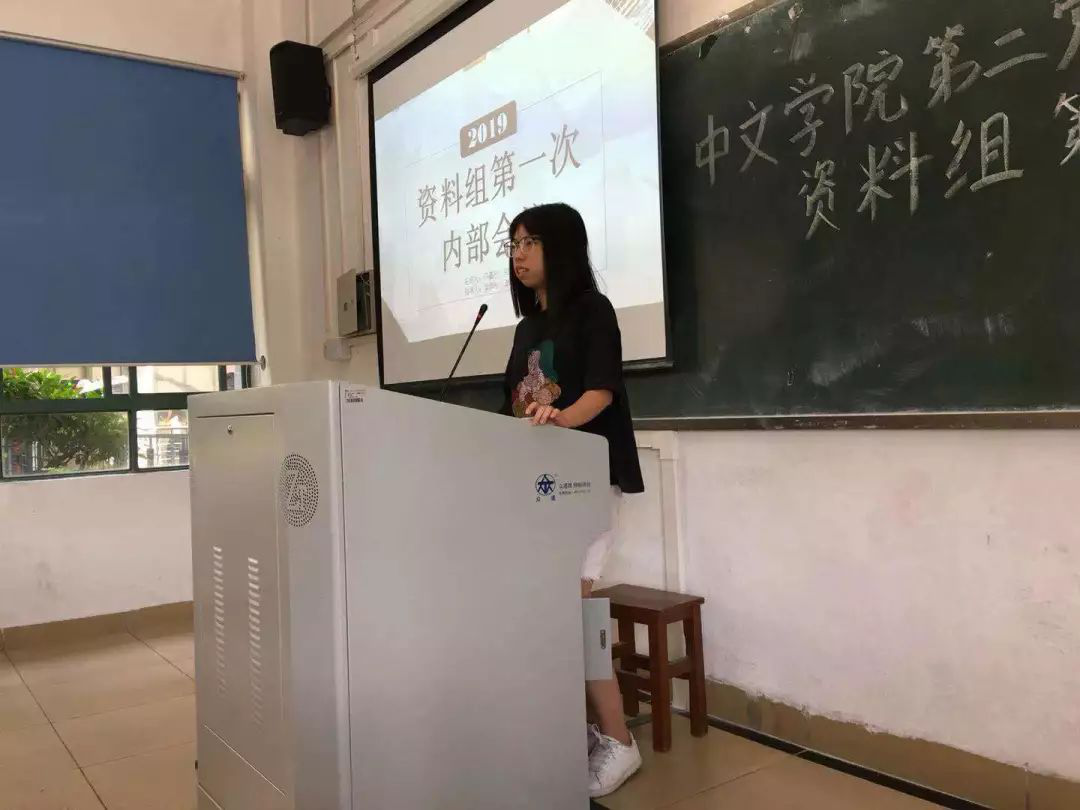 随后,党支部的工作负责人李蔼颖发表讲话。她首先表扬了资料组上学期的努力与工作的高完成度,并提出组员们要和本学期的新组长积极配合的要求,且对本学期的工作表达期待。