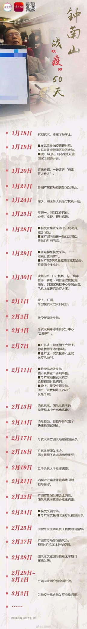 现如今,疫情当前,钟南山院士的一言一行,都牵动着国人的心,成为不少人的定心丸。1月18日夜驰武汉至今,钟南山战“疫”已50多天,通过媒体报道可以发现,50天来他为疫情奔波的行程满满当当,始终冲在前线,几乎没有休息过。在广州新闻专题通气会上表明“4月底基本控制疫情”的信心后,又马不停蹄为欧洲呼吸学会介绍中国经验。最新消息显示,在他参与指导下,国际首个非转基因新冠肺炎小鼠动物模型成功建立。