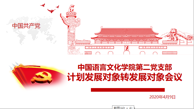 本支部讯(记者/曾琳 唐王子 摄影/唐王子 曾琳)2020年4月9日下午,中文学院第二党支部计划发展对象转发展对象会议顺利召开。受新冠疫情影响,中文学院第二党支部积极响应国家防疫政策号召,本次会议以线上会议的方式进行。中文学院第二党支部书记招海燕老师、党员、预备党员以及全体计划发展对象出席此次会议。