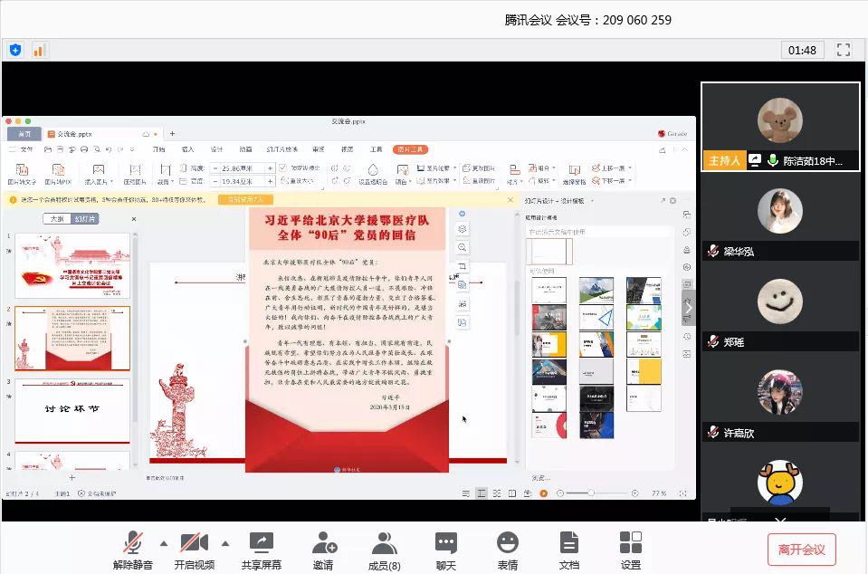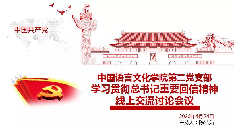 为深入学习习近平总书记重要回信的丰富内涵,进一步全面贯彻落实习近平总书记重要回信精神。中文学院第二党支部于2020年4月24日下午在腾讯会议召开了线上交流会议。出席本次会议的有中文学院第二党支部成员。