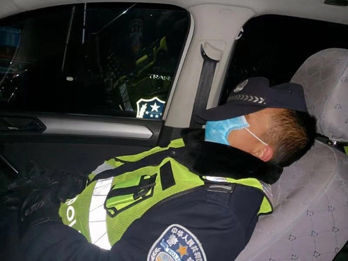 凌晨4点,长夜漫漫,短暂的休息,他们高挺的身躯,蜷缩在“温暖”的车厢里,成为黑夜中的最美睡姿。