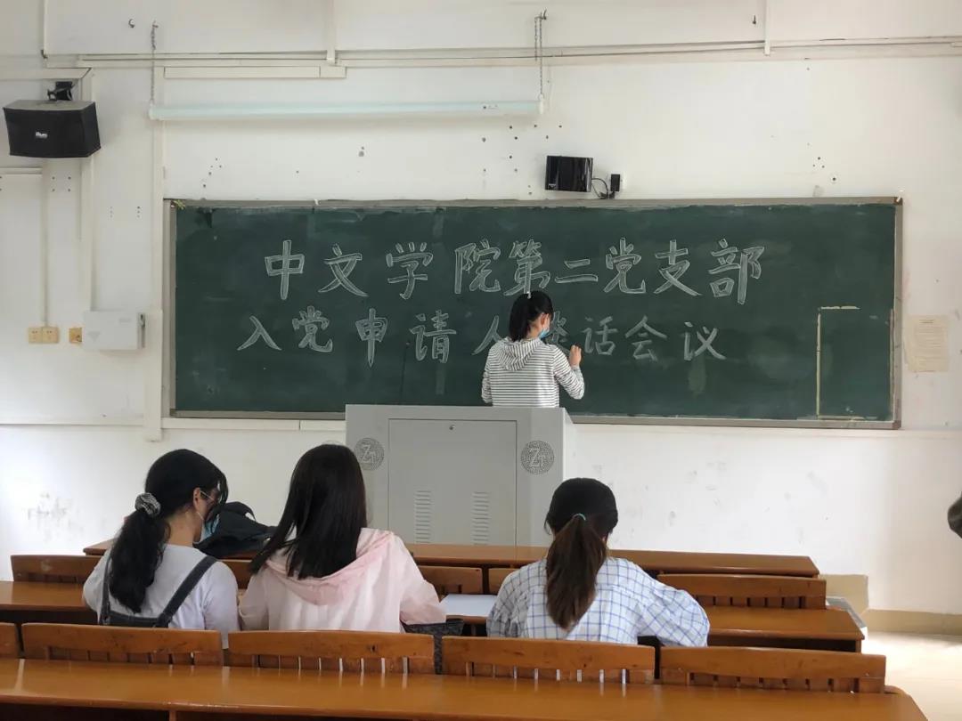 本支部讯 (摄影/温钰如 记者/马雪莹) 随着新学期党支部工作的开展,为进一步加强中文学院党组织的队伍建设,壮大党支部力量,中文学院第二党支部于10月8日下午在教学楼A202组织开展本学期入党申请人谈话。