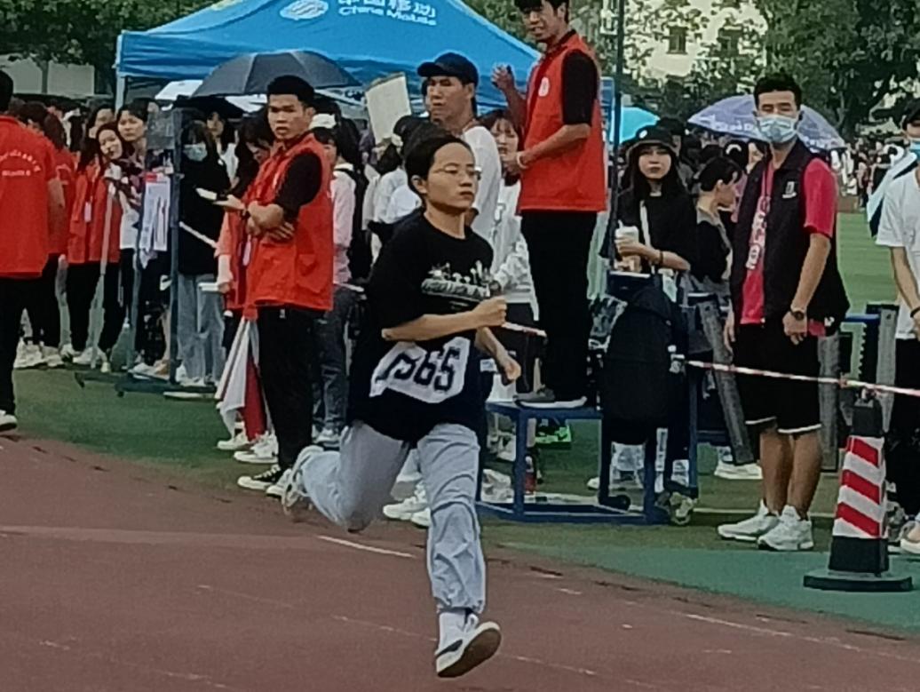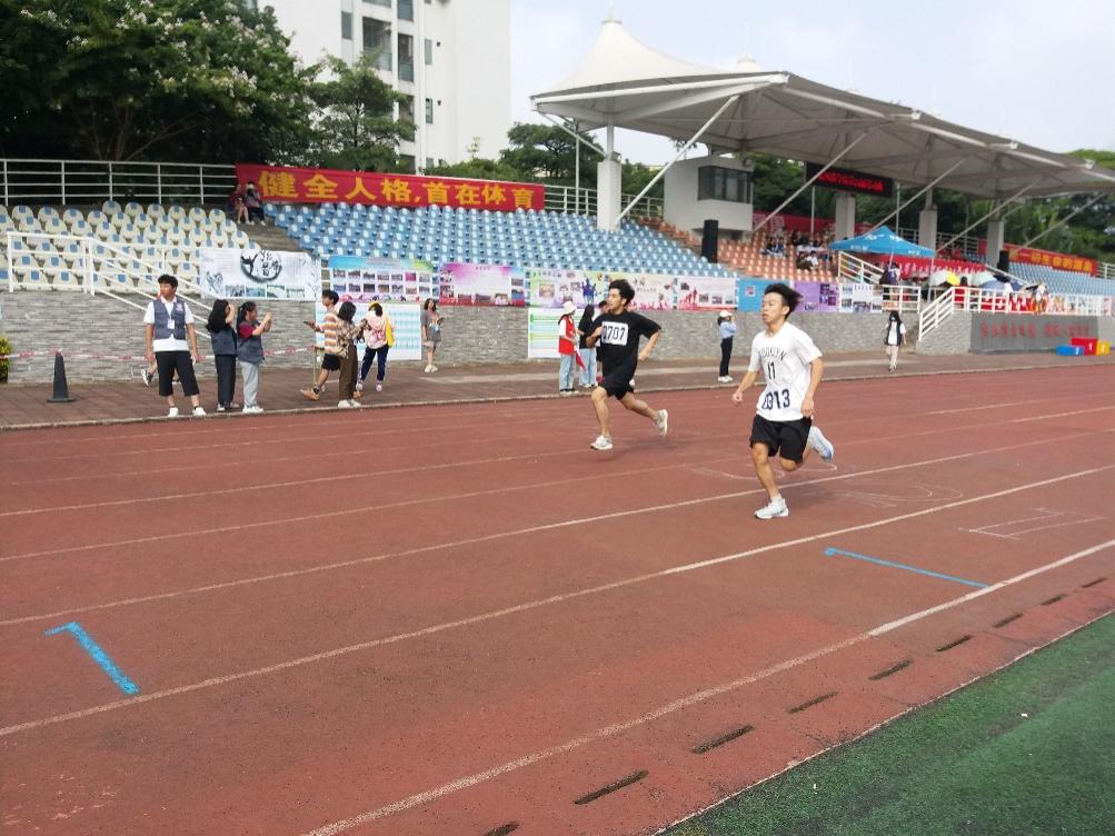 在同学们的热烈欢呼下,我院李文桐同学在弯道处勇超身边的另一位运动员,最后荣获小组第二名。遗憾的是在比赛过程中,我院黄华艺同学在中途不慎跌倒,但他仍坚强站起来继续往前跑,最终冲向终点。虽然最后的成绩不太理想,但运动员们坚持不懈、永不放弃的精神值得赞扬,同学们也应向其学习。