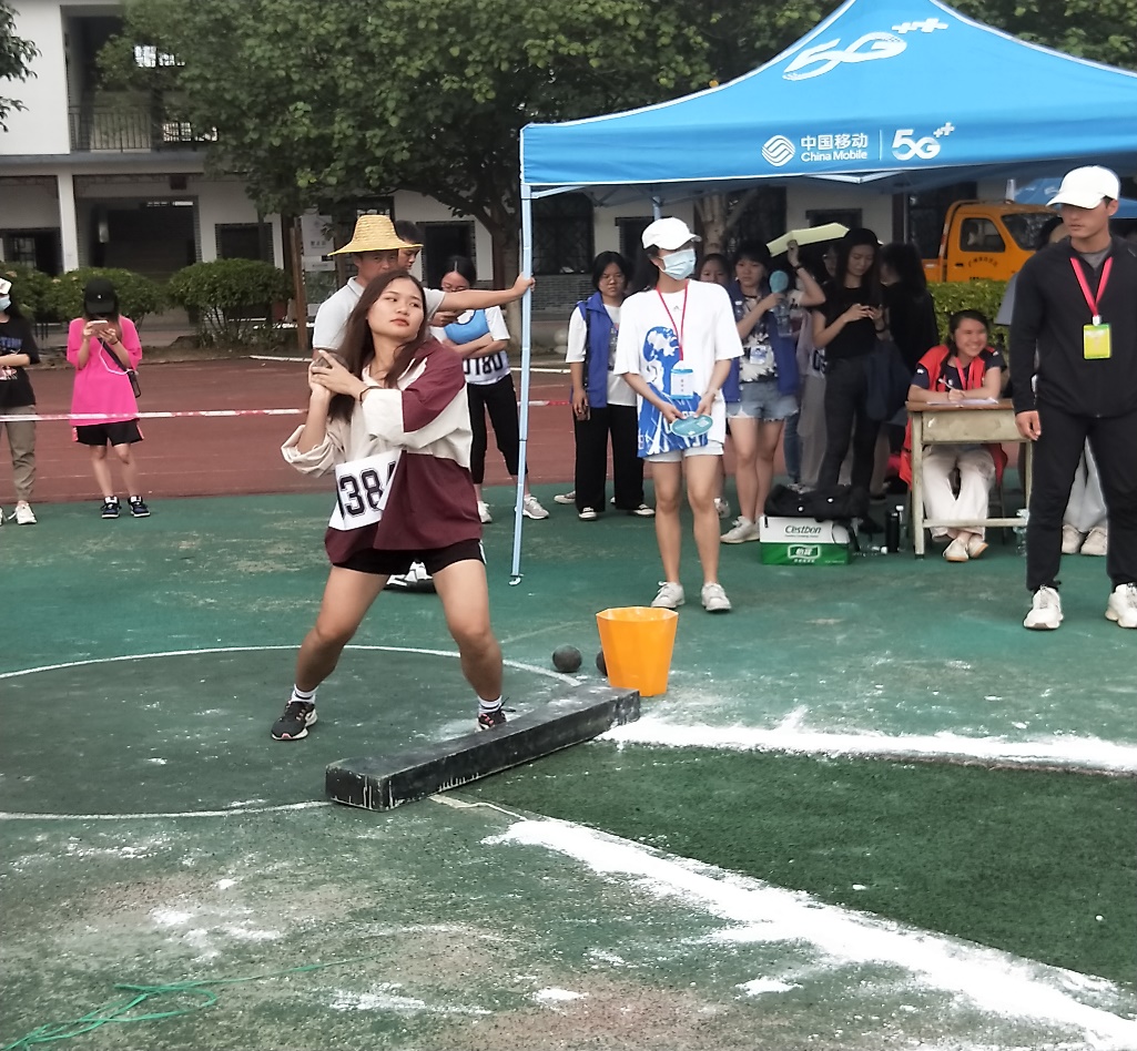 比赛开始前,运动员们都十分认真地做好了准备运动。随着裁判员手中红旗挥下,运动员们一个接一个投掷铅球。我院的覃瑶同学在比赛中投出了5.26m的好成绩,尽管并未能获得前列的名次,但是这种积极参与、斗志昂扬的精神是值得我们学习的。