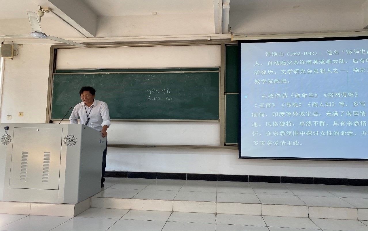 人生派写实小说不仅局限于乡土小说,乡土作家也不仅限于乡土题材。张宁教授为同学们详细讲解了叶绍钧先生的《潘先生在难中》,此文章讲述了一个首鼠两端的小学校长在军阀混战之中携家逃难。听说教育局长主张开学并乘机裁员时,他又独自冒险赶回家,结果虚惊一场。最为讽刺的是,潘先生明明携家逃难却被人称赞他有胆量,并且得到了举足轻重的地位。这奇妙般的故事转折,激起了同学们极大的兴趣,目不转睛地盯着屏幕,底下引起了一小块波澜,有声音说道:“那他岂不是很有运气,明明是懦夫却被称赞为英雄”。这正是故事的奇妙之处啊!“潘先生虽为知识分子,但骨子里还是小市民的气质。作者把城市小资产阶级没有社会意识与其‘卑谦’的利己主义写得很透彻,把当时文坛很少见的形象刻画了出来。”张宁教授短短的几句,仿佛也在讲述他对潘先生的不屑,对过去落后的社会风气的隐隐叹息。