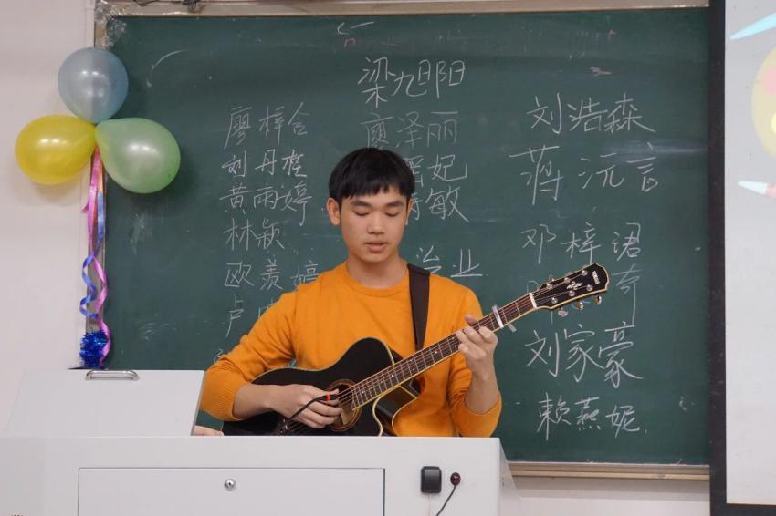 表演环节点燃了全场的气氛。陈绍翔带来的吉他独奏给全场观众带来听觉上的盛宴,婉转动人的旋律在指间流出,低沉有力的嗓音也随之淌出,吉他与歌声的完美融合,无不熏陶着在场每一个人的心灵。