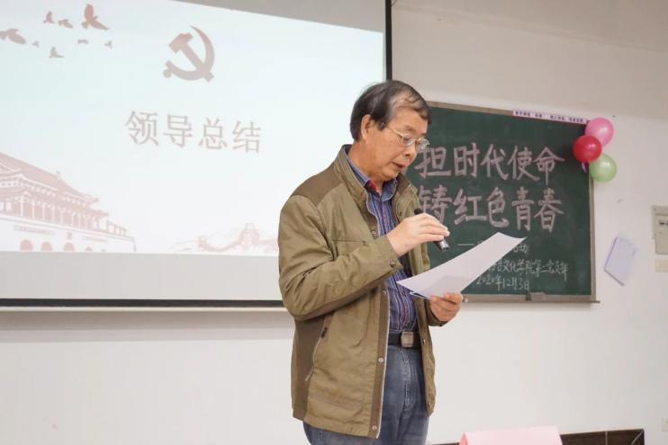 本支部讯(记者/邓诗敏 摄影/欧羡婷)123日下午230,中国语言文化学院第二党支部在F302召开了以“勇担时代使命,炼铸红色青春”为主题的12月党日活动。本次大会以丰富多样,具有教育意义的表演形式来鼓励支部成员树立远大理想、热爱伟大祖国,坚定跟党走,勇担时代使命、矢志拼搏奋斗,以此推动党支部队伍的建设和进步。中国语言文化学院副院长吴晟、中国语言文化学院第二党支部书记招海燕、中国语言文化学院教学秘书黄烨彤出席了本次活动。