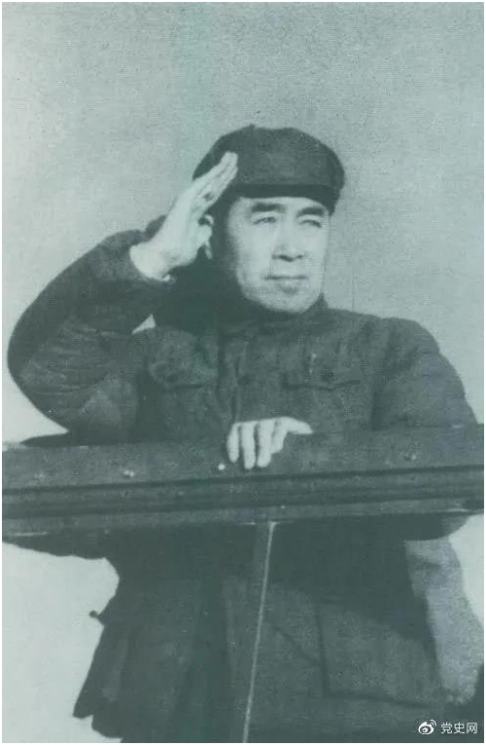 1949年3月,中共中央进入北平。图为周恩来在北平机场检阅部队。