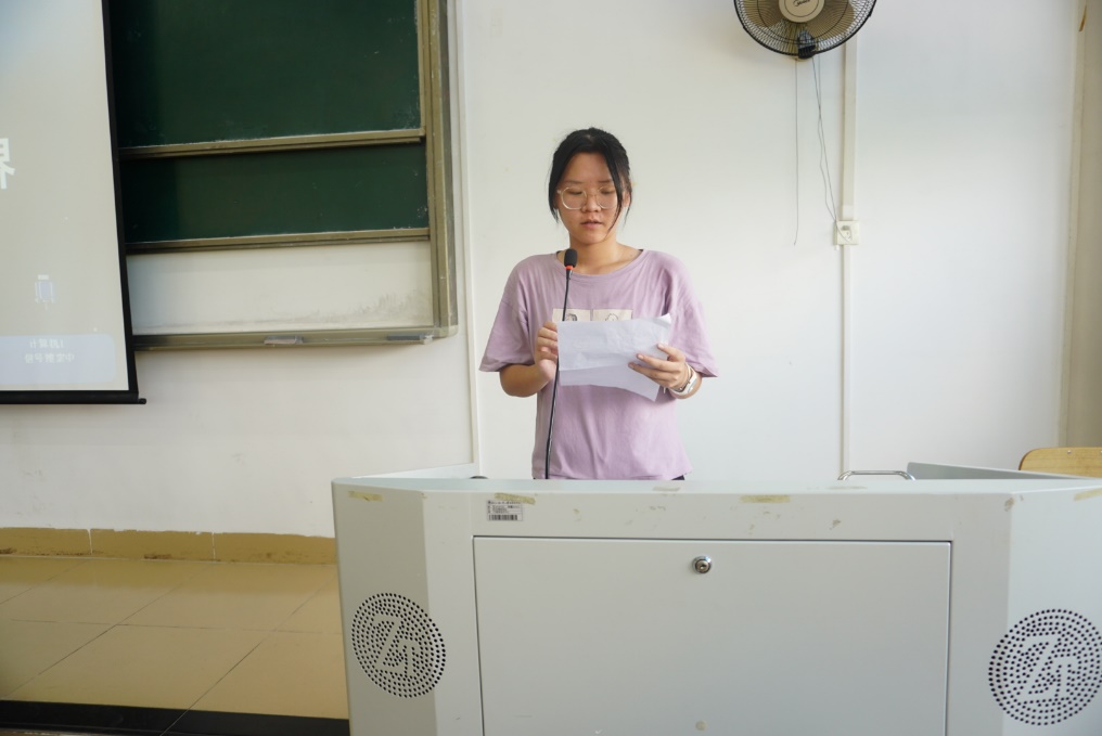 辅导员刘佳欣老师向新生们强调了一些纪律问题,并对新生们的未来发展充满期望。21级汉语言2班的罗思鑫作为新生代表发言,她向大家讲述了对于承担如何起学生的身份的看法,她认为以学习为首位、尊师重道、有社会责任感、做时代新青年,是学生身上应该体现出来的闪光点,我们都是闪耀着光芒的人,愿中院的发展光芒万丈。