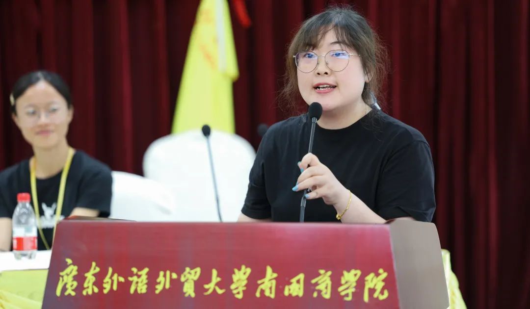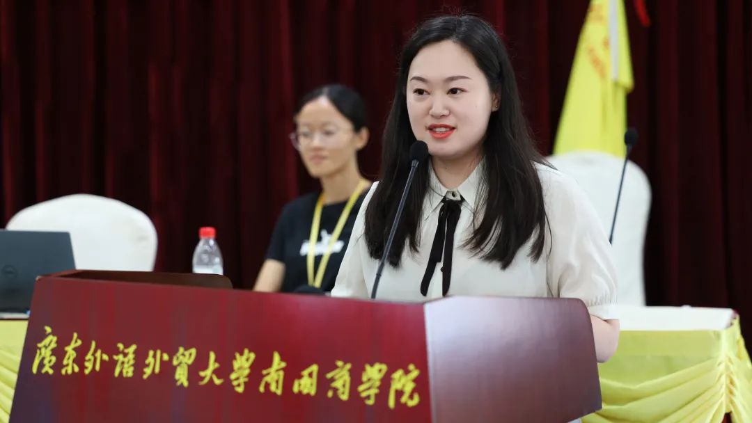 李金萍作自我介绍时说,硕士毕业于英国女王大学,本科毕业于本校。她结合自己的南国大一到大四的经历与经验、校外实习兼职经历给新生们提出建议和方向,让学弟学妹们更有目标和前进的方向。