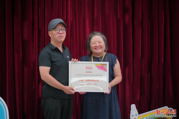 活动现场,新媒体与国际传播学院院长杨魁主持活动。广告人文化集团副总经理张汛代表中国大学生广告艺术节学院奖组委会,为新媒体与国际传播学院颁发“年度广告教育推动奖”,新媒体与国际传播学院副院长李淑芳上台领奖。