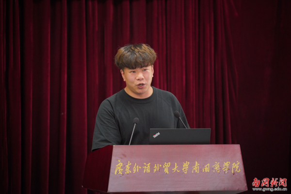 中国大学生广告艺术学院奖组委会代表肖禹给现场师生进行活动介绍(马冀韬 摄)