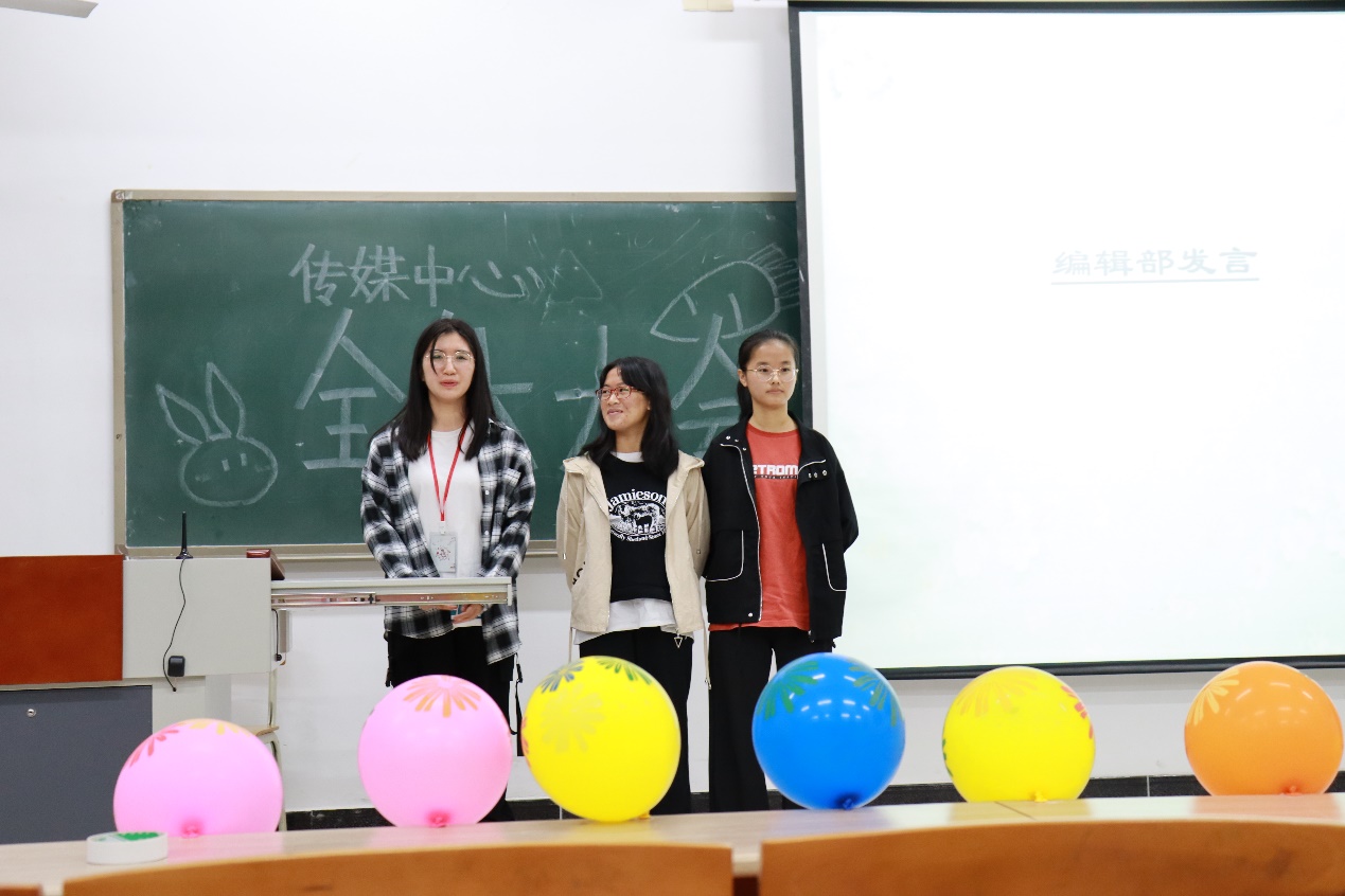 中文传媒中心主任潘佳慧率先发言,表达了对所有新部员的热烈欢迎,同时也向所有部员表达了上级对各部门在新学期的期待,希望所有成员可以全力以赴去完成每一项任务,做好中文学院的宣传工作,记录下中文学院每一次精彩纷呈的活动,向外界展示中院的激情活力。潘佳慧学姐也勉励所有部员,希望每位部员都可以在中文传媒中心学到有用的知识,提高自身能力,为自己的大学生活画上点睛之笔。