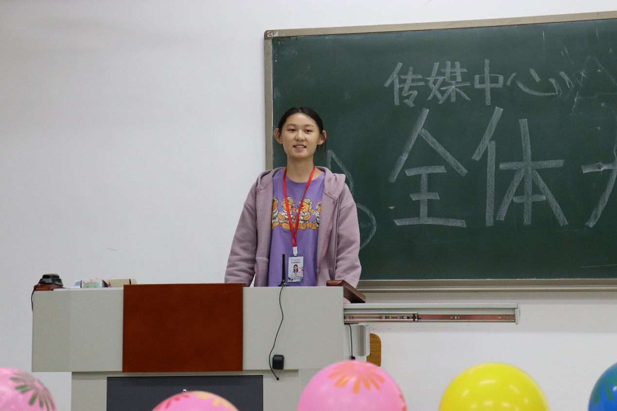 快乐的时光总是短暂,伴随游戏环节的结束,大会也接近尾声了。在最后,潘佳慧学姐介绍新成员曾淳学姐,曾淳学姐以主任助理身份成为了中文传媒中心大家庭的一员,在场所有成员都对曾淳学姐表达热烈欢迎,曾淳学姐也表达对加入中文传媒中心的喜悦,期待在中文传媒中心可以和大家愉快相处,共同进步。