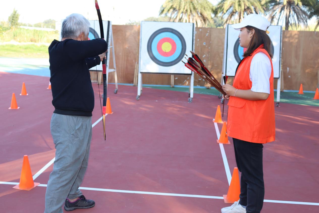 11月26日下午,教工组中华射艺在篮球场上顺利展开。我院大部分老师都未尝试过射箭,赛前几位老师有些许紧张,但他们都勇于尝试。王毅院长提前去观赛吸取经验,他表示自己从来没有射过箭,所以特意前来观摩,他总结前人经验,表示射箭得快稳准,具体来说就是撒放要快,举弓要稳,瞄准要往左下描。蓝教授则表示,射箭这项运动看似简单,实则不易。最终在我院老师的努力下,获得了第九名的好成绩。