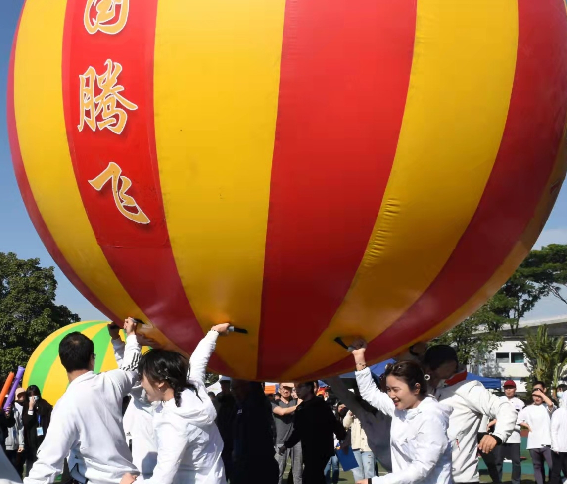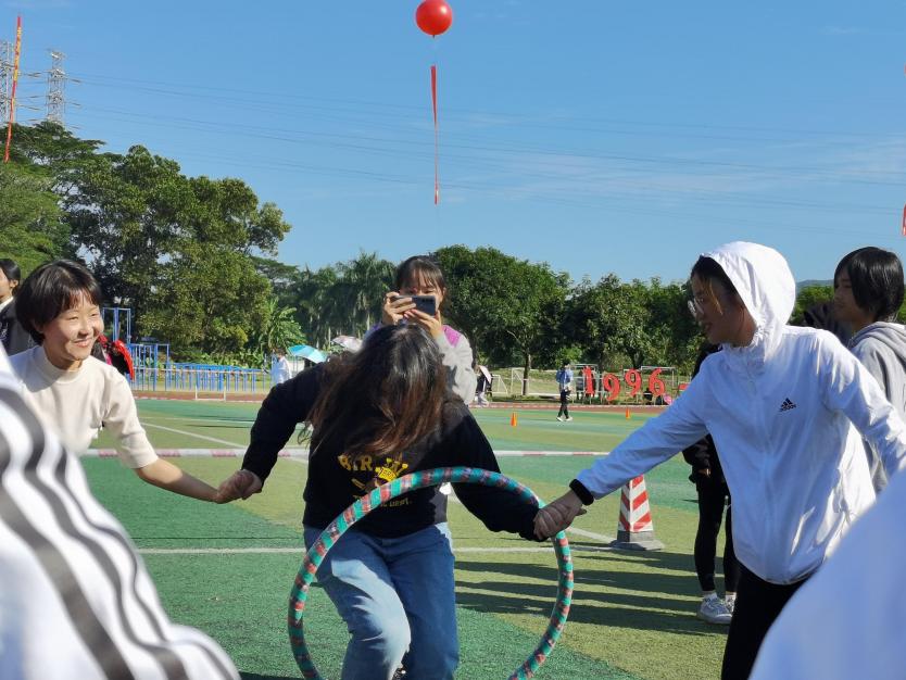 11月25日上午,虽然几天前的寒流让大家都打了一场“冷战”,但是今天的风格外柔和,天空格外干净,阳光格外温暖,在场南国人的心中都燃起了热烈的火。精彩的开幕式后,我们在操场看到了中院老师们的身影,由王毅院长、吴锦德书记、吴晟副院长、胡博老师、刘佳欣老师、吴日静老师和杨大海老师组成的队伍将参加“南国腾飞”比赛,他们热情澎湃,怀着激动的心期盼着比赛来临。在听清规则后,大家齐心协力,在确保安全的情况下,载着“南国腾飞”彩球共同向终点冲刺,这也预示着南国必然向美好的未来发展,必定辉煌腾飞,最终我院老师们以优异的成绩结束了比赛。