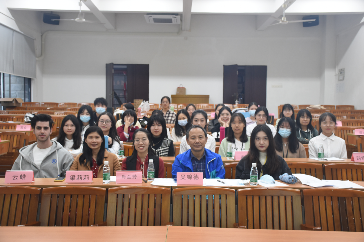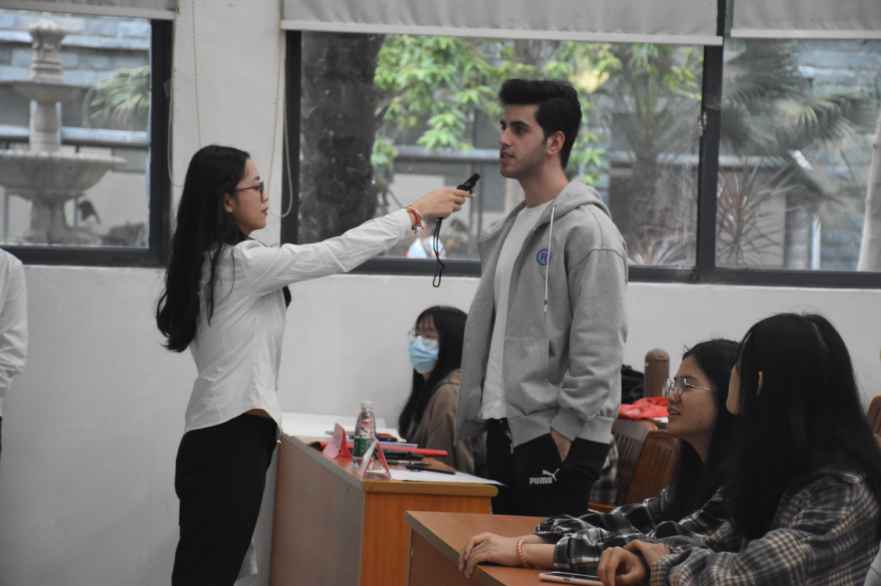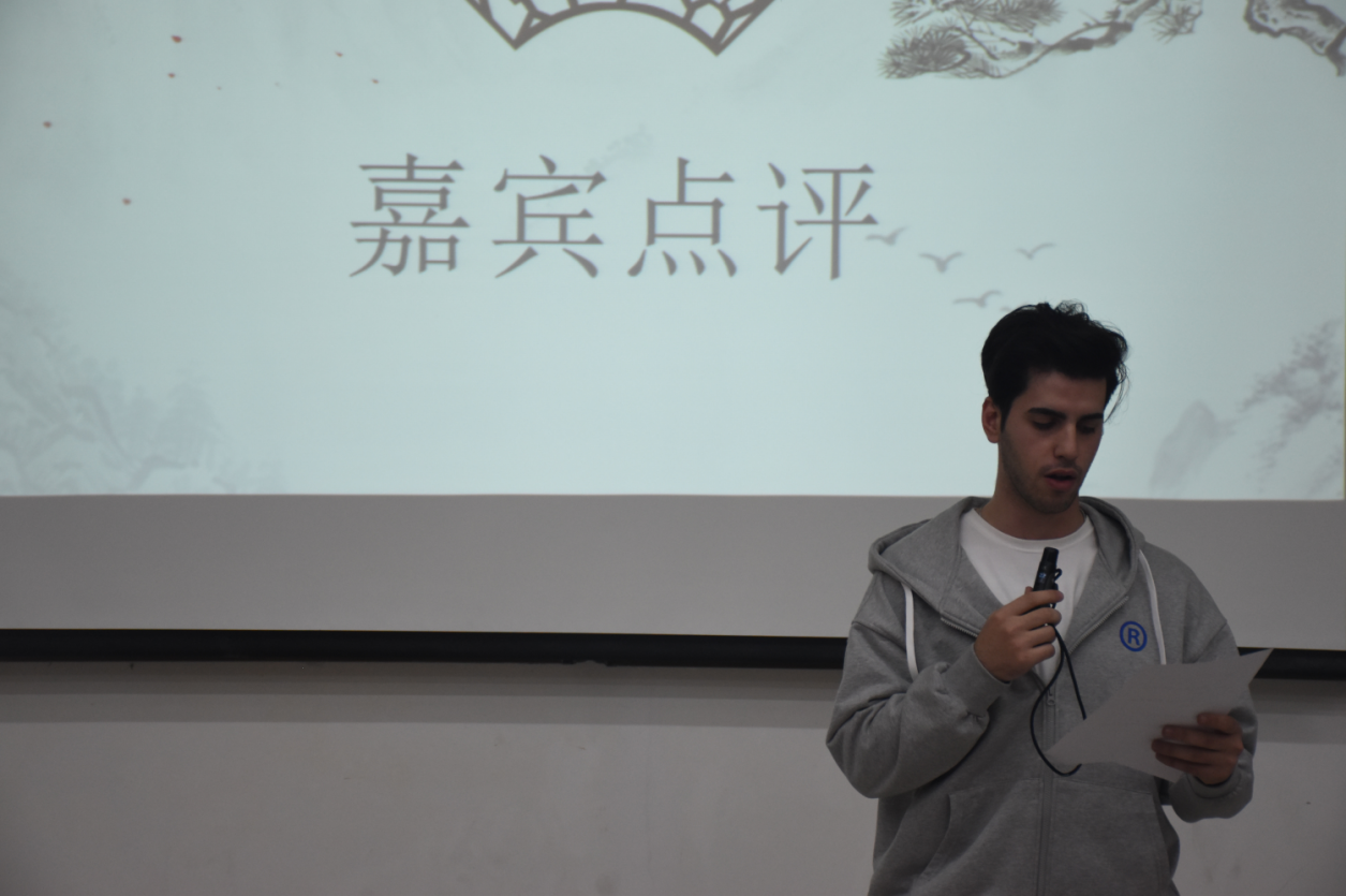 本网讯 11月29日下午,秉着“提高教学能力,适应汉语国际教育需求”初衷的国际汉语教学技能大赛在F102拉开帷幕。中国语言文化学院院长王毅教授、副院长吴晟教授、党总支书记吴锦德书记、肖兰芳老师、梁莉莉老师、谢诚老师、团学指导老师刘佳欣老师作为评委嘉宾出席活动。除了老师我院还特邀了团委学生会书记处主席团成员且拥有叙利亚国籍的云皓同学。