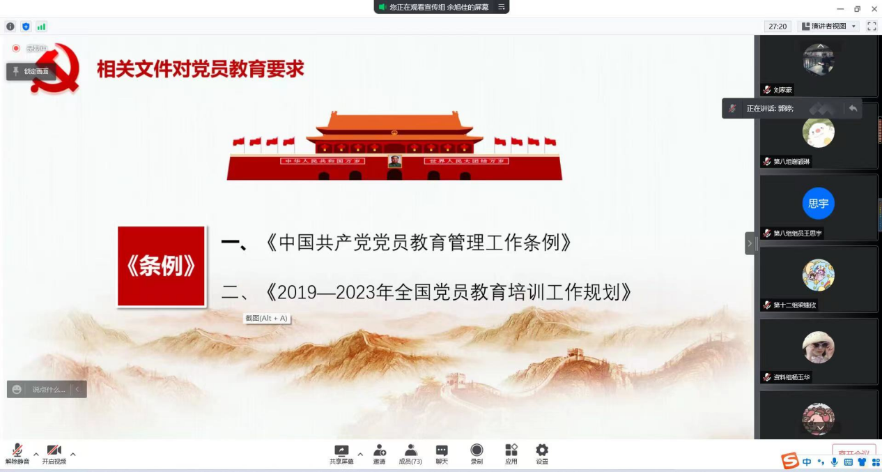 其次通过学习《中国共产党党员教育管理条例》,党支部全体成员更加深刻地了解相关文件对党员教育的要求。文件中指出要把党性教育和理想信念教育贯穿始终,坚持和完善中国特色社会主义制度、推进国家治理体系和治理能力现代化为目标,对党员进行系统教育培训。除此之外,《2019-2023年全国党员教育培训工作规划》指出要对新党员、青年党员、老党员进行不同的教育培训。