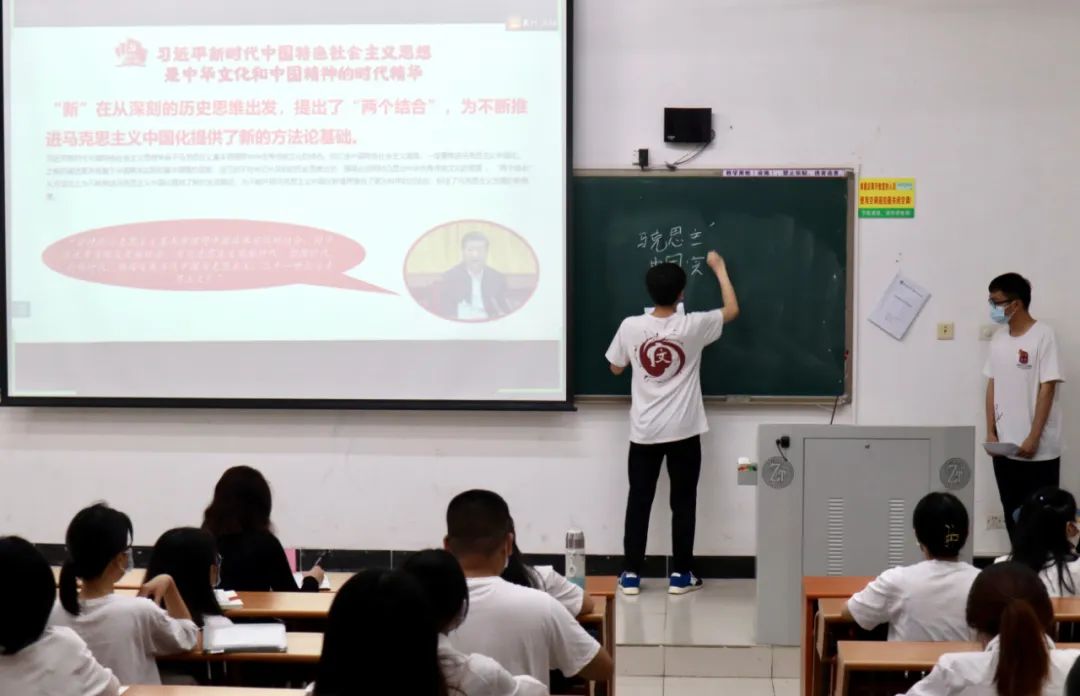 接着是“学习党的十九届六中全会精神”微课分享,五个小组分别抽取五个主题进行学习讨论并上台分享相关内容,各小组代表通过精彩的展示与讲解,回答了“为什么建党百年之际我们党要作出第三个历史决议?”“为什么说习近平新时代中国特色社会主义思想实现了马克思主义中国化新的飞跃?”“为什么说新时代党和国家事业取得历史性成就、发生历史性变革?”“为什么说党的百年奋斗书写了中华民族几千年历史上最恢弘的史诗?”以及“为什么说‘两个确立’具有决定性意义”,抒发了各组对政治理论的深刻见解。
