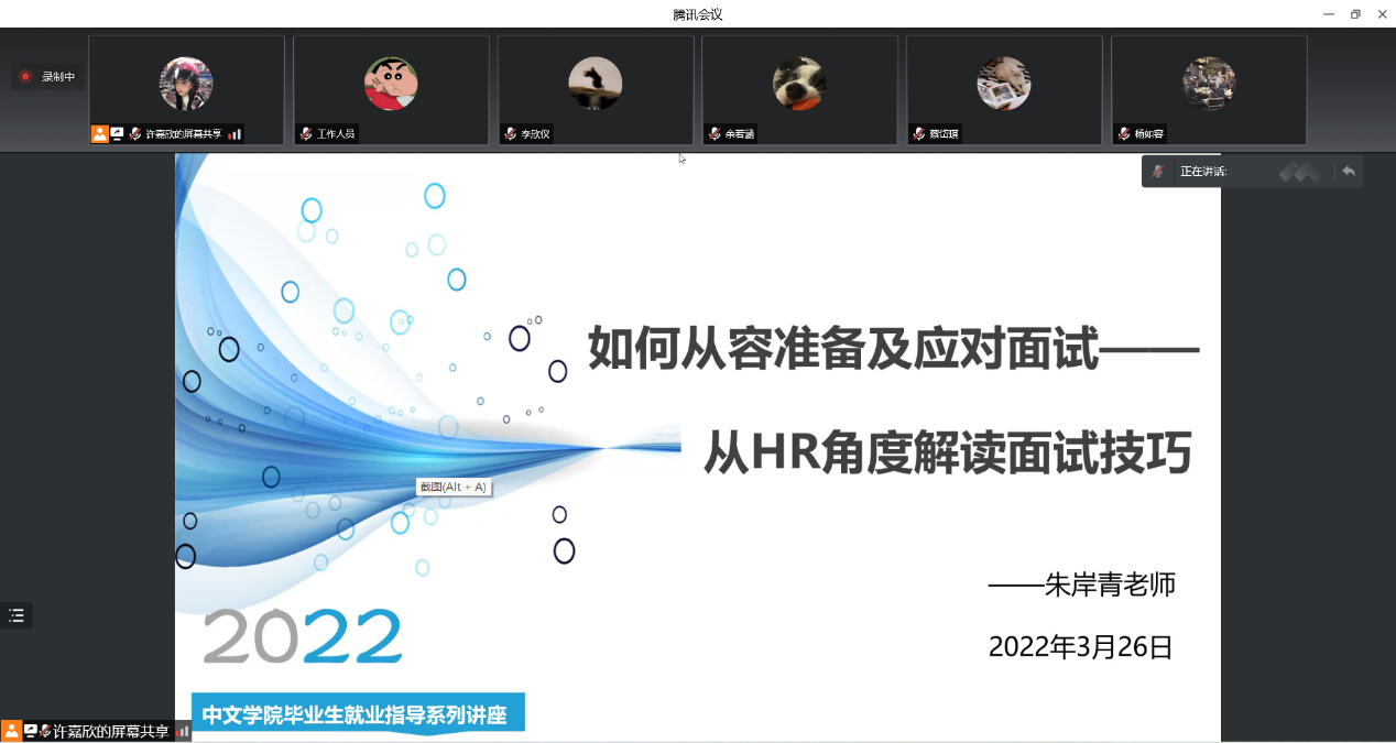 佘晓仪老师鼓励同学们抓住机会,结合自身感兴趣的方面,多去了解一些招聘岗位,积极投简历、参与线上招聘会,现在正值三、四月,是一个寻求就业的好时机,希望同学们都能够找到理想岗位。