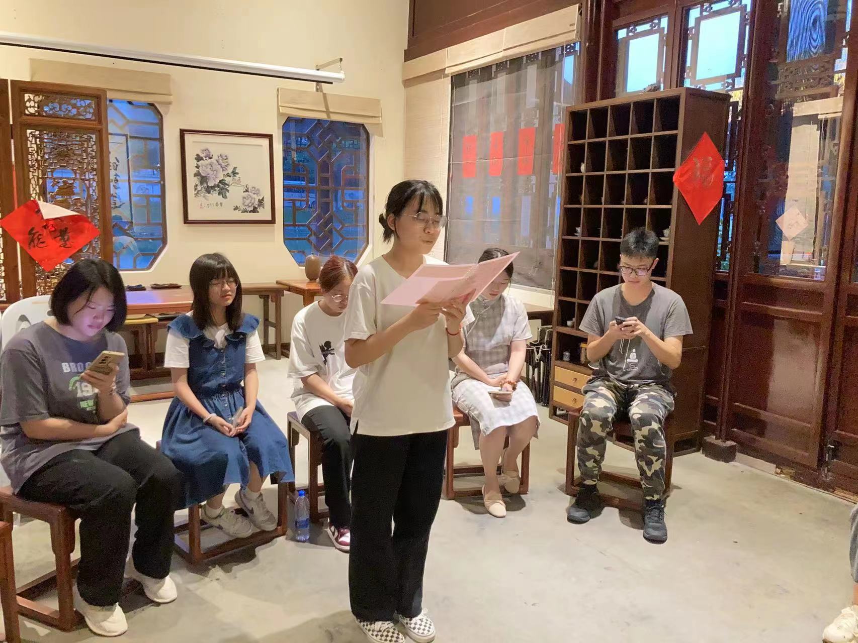 王毅院长在指导诵读时说道:“诵诗要注重节奏与停顿,重点领悟诗人写诗的背景与情感。”在这诵读积累的过程,我们既可提高对生活的感悟能力与对世界的认识,还可以更好地去了解中国文化和外域风情。最后,大家齐声朗诵了《月光下的中国》,为第一次诵诗活动画上了圆满的句号。茉莉茶舍内,同学们的朗朗诵读声和着窗外 声声悦耳的蝉鸣,淹没了这夏日里的聒噪。