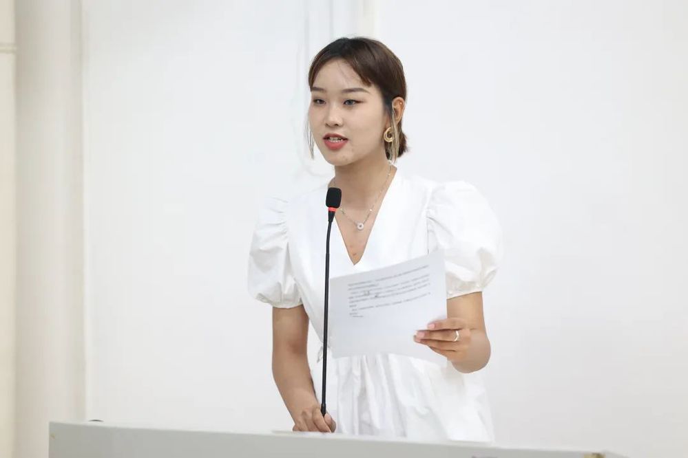 2021级老生代表李雨芯从自身经历出发,分享自己在大学学习中的心得,展现自己的变化,并解答同学们的疑问。