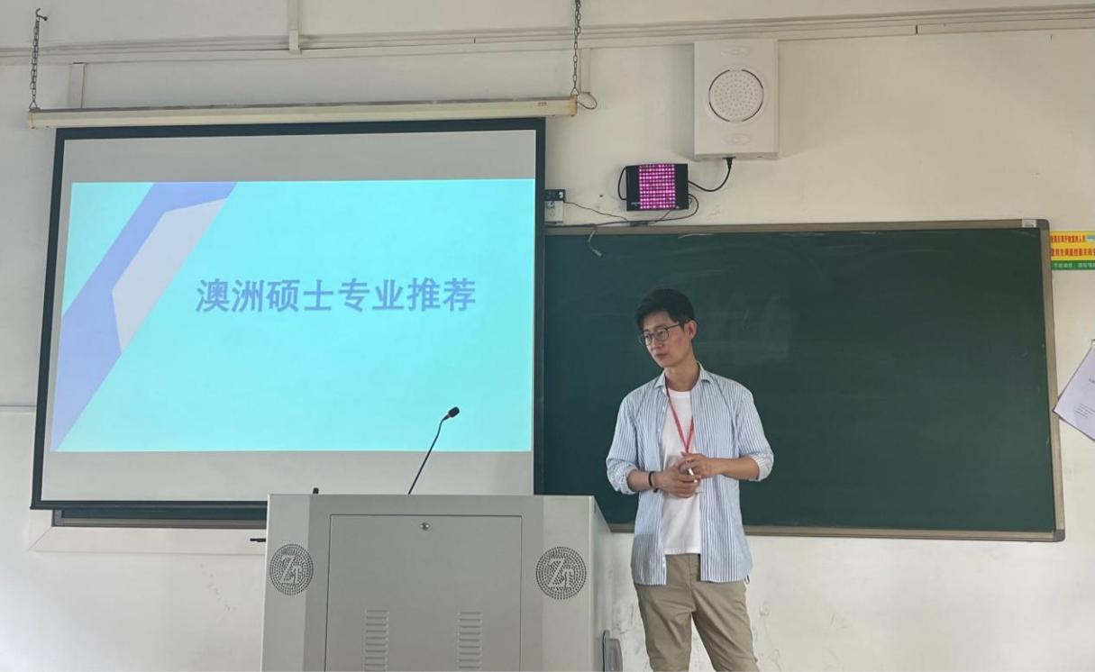 齐老师也以自己的教育和工作经历为例,让同学们对赴澳读研的相关事项及基本情况有深入的认识,耐心地为同学们答疑解惑,从学生学习情况出发提出了有效的建议,并鼓励学生在申请学校前努力提高自己的学习成绩和英语水平,为赴海外深造做好充足的准备。