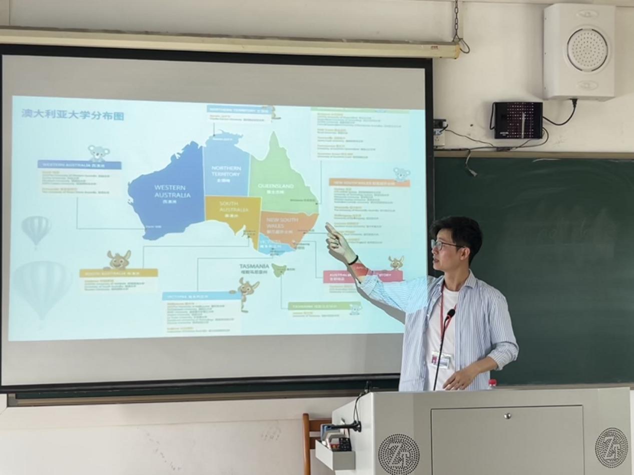 讲座期间,齐老师详细介绍了澳大利亚主要大学联盟、大学发展历史、大学入学要求、学术水平等信息,并就同学们提出的问题进行了回答。